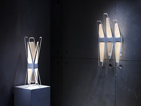 Space shuttle shaped table lamp Trinity is more than a lamp. Combined by three individual pieces creates a luminous sculpture, a presence as much at home beside sofa as on another piece of furniture. The elegance stays either on or off.