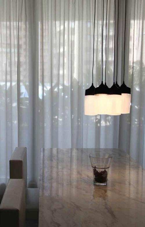 Leaf -8 pendant is composed four LED blades Each blade emits pyramid-shaped light. The hanging Blades turns into a beautiful landscape of reflects light from LED blades. Each individual pendant varies in length and can easily be hung in various compositions, perfect for the dining room, the kitchen, as accent lighting or a partition.